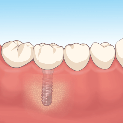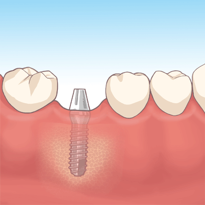 ⇒ 状態によっては、手術当日から仮歯を使用して噛むことができる方法もあります。