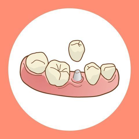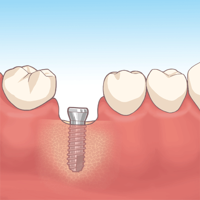 歯を失った部分の顎の骨に人工の歯根(チタン製のネジ)を埋め込み、上から人工の歯を固定する治療法