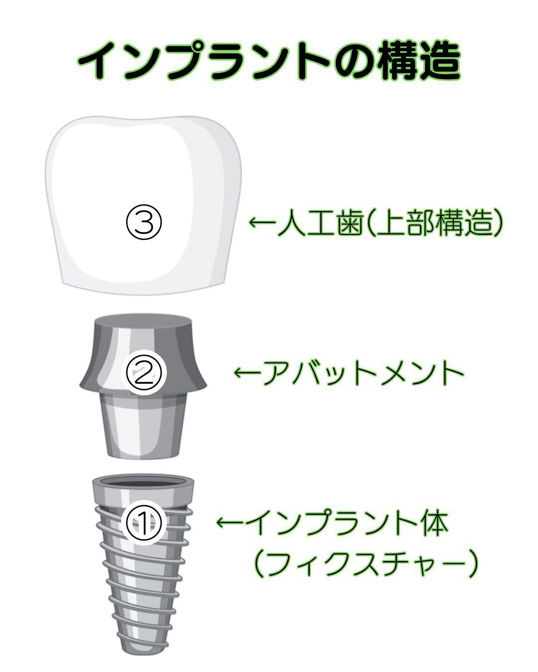 チタンは生体親和性に優れ、腐食しにくく、長期的に安定した特性を持つため、インプラント体の素材として使用されています。